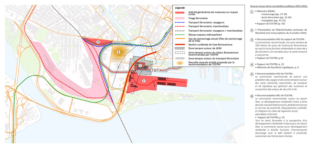 De façon plus spécifique, l’OCPM a également recommandé l’introduction, autour du bassin Peel, d’un développement résidentiel mixte, dense, mais à échelle humaine, doté de commerces et de services de proximité, d’équipements collectifs et intégrant les cibles de logement social, abordable et familial. L’atelier permettra d’ouvrir la discussion entre les parties prenantes sur cette hypothèse et d’examiner les balises devant éventuellement encadrer la mise en place de ces fonctions.